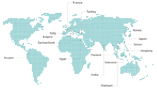 浙江——嵊州、蕭山、臨平、湖州;江蘇——南通、盛澤;河北——高陽(yáng);廣東——佛山;臺(tái)灣——彰化;韓國(guó)——大邱;泰國(guó)——曼谷;孟加拉——達(dá)卡;印度尼西亞——雅加達(dá);越南——胡志明